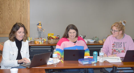 Local educators reunited for an English Language Arts Professional Learning Network at the Dickinson-Iron Intermediate School District on Friday. The General Education Department restarted the event after a five-year hiatus. The network provides a space for teachers to exchange ideas, collaborate and share resources, as well as engage in discussions about teaching practices and trends in education. Norway-Area Schools English teachers — from left, Andrea Celello, Amanda Hudson and Cassandra Gustafson — discuss data presented by DIISD Literacy Consultant Virginia Brouillard. (Terri Castelaz/Daily News)