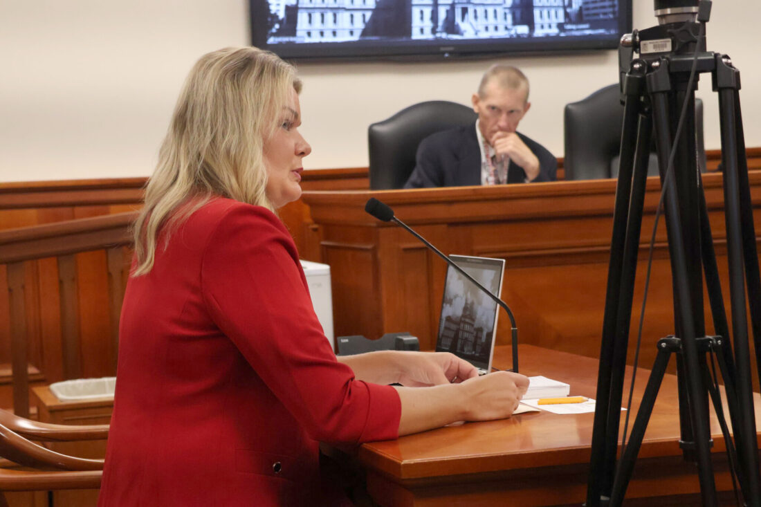 Michigan House Election Integrity Committee Chair Rachelle Smit, R-Martin, speaks on Aug. 19. (Kyle Davidson/Michigan Advance)