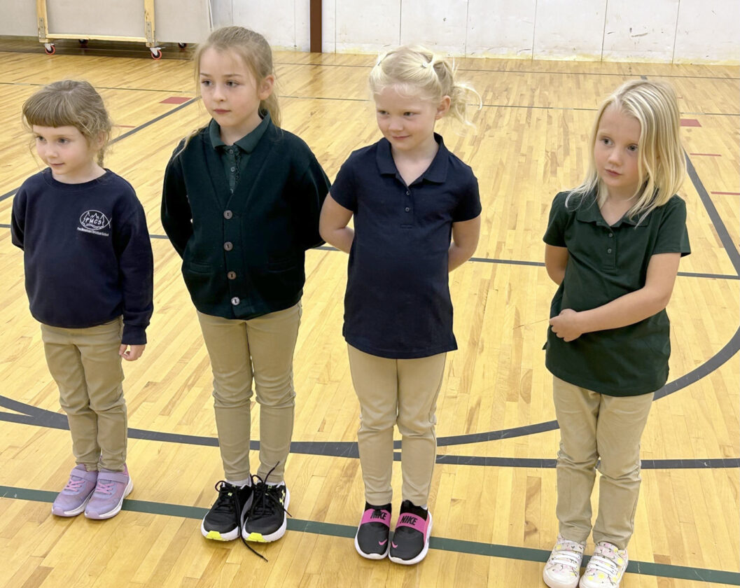 Students at Pine Mountain Christian School get ready to play a game during physical education time. From left are Reba Promenchenkel, Letty Harveston, Blake Baker and Hailey Hodge. (Submitted photo)