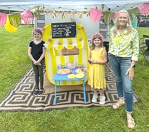 - The Sour Sisters, Amia Jane and Mariana Joy Dukes, at this year’s Lemonade Day with Suzanne Larson, Dickinson Area Chamber of Commerce executive director/CEO and organizer of the event. (Submitted photo)