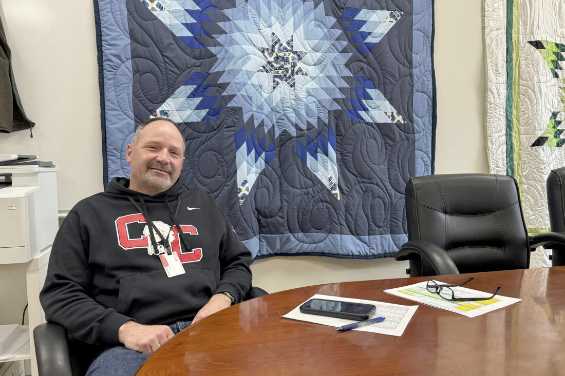 In this photo provided by South Dakota News Watch, Rob Coverdale, superintendent of the Crow Creek Tribal School District in Stephan, S.D., is shown in his office Feb. 7. (Bart Pfankuch/South Dakota News Watch via AP)