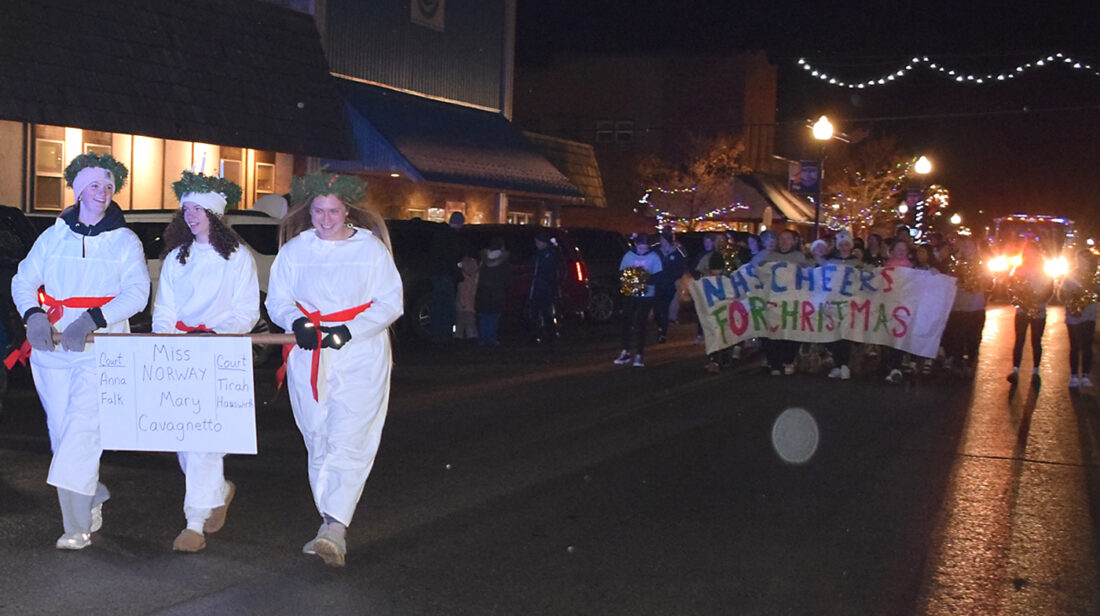 - Miss Norway Mary Cavagnetto, center, along with court members Anna Falk, left, and Tirah Hauswirth take part in the 2024 Christmas in Norway parade. (Terri Castelaz/Daily News, file)