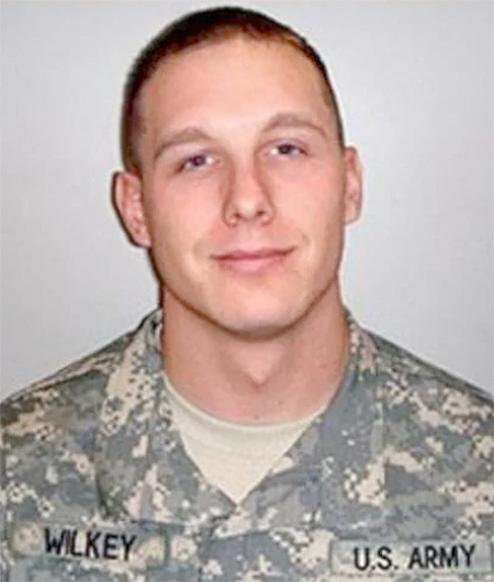 Wilkey died June 18, 2007, at age 22 from wounds suffered the previous day when a roadside bomb blew up near his unit in Baghdad, the Pentagon said at the time. His widow was left with two children and a third on the way.