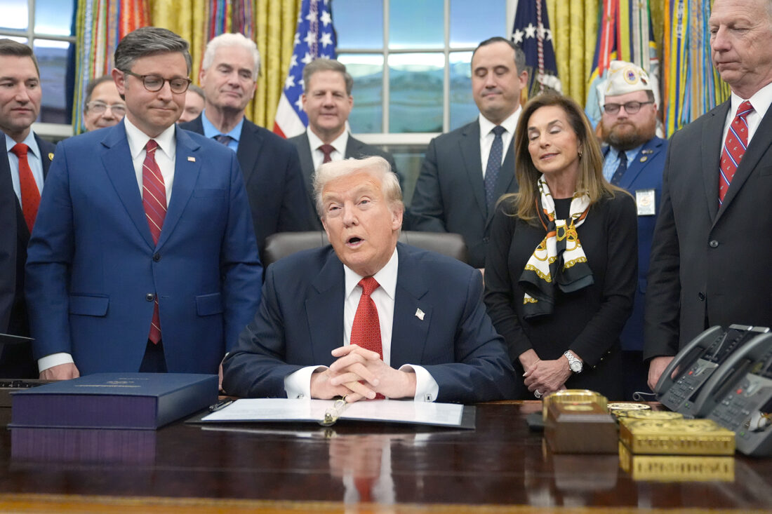 President Donald Trump speaks before signing the funding bill Wednesday to reopen the government, in the Oval Office of the White House in Washington. (AP Photo/Jacquelyn Martin)