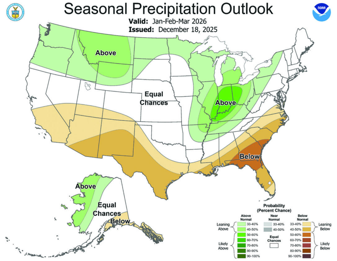 Based on what he has read and what he has seen from the Climate Prediction Center, it does look like above-normal precipitation amounts are predicted, with slightly below-normal temperatures, Prislovsky reported.