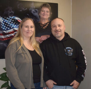 - The owners of Who’s Alibi in Niagara, Wis. — from left are Crystal and Gibby LaFave, and in back is Wendy DeClark. (Marguerite Lanthier/Daily News)