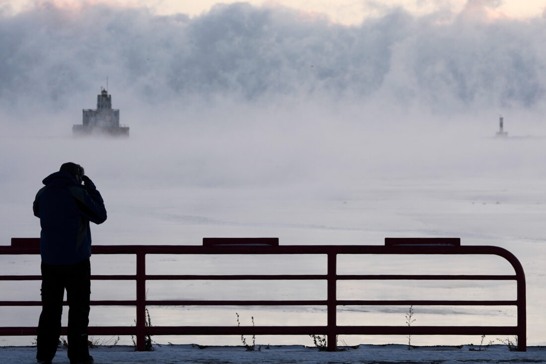 Doug Kunde watches steam rise over Lake Michigan in Milwaukee, where temperatures Friday were not expected to reach zero degrees. (AP Photo/Morry Gash)