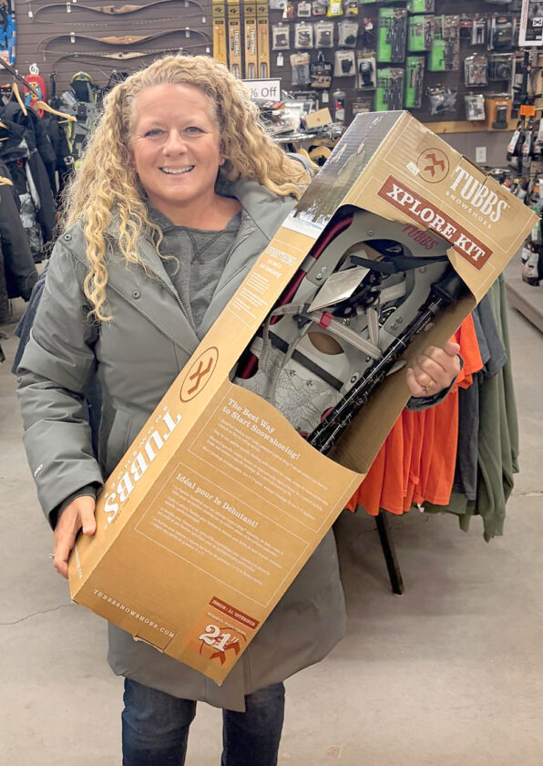 Jennifer Christy of Iron Mountain was the winner of the snowshoes donated by Hardcore Outfitters of Iron Mountain for the fourth-annual Stomp the Snow event Jan. 17 at Pine Grove Country Club in Iron Mountain. (Terri Castelaz/The Daily News)