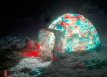 During the warm stretch they lost about 100 blocks of ice they’d stockpiled for the build, which put them behind schedule. They were able to complete the igloo last week.