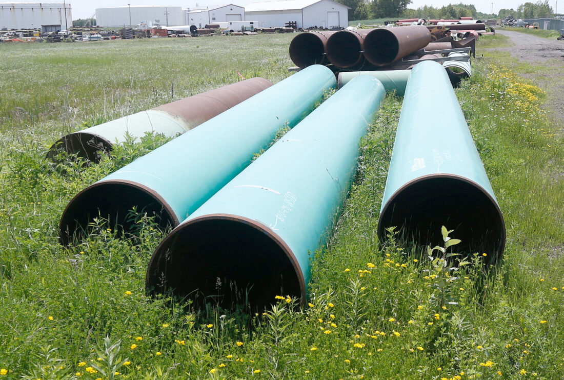 Pipeline used to carry crude oil sits at the Superior, Wis., terminal of Enbridge Energy, June 29, 2018. (AP Photo/Jim Mone, file)