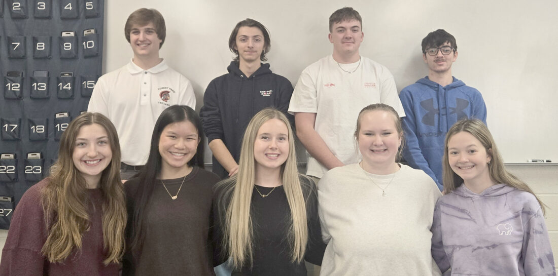 Forest Park School is giving students a chance to dual enroll in a college calculus class. From left, in front are Ava Fischer, Lily Sarder, Fynnly Ketola, Jonnie Ketola and Maykayli Carlson; in back are Dawson Ponchaud, William Hoffman, Cooper Hill and Brady Wagoner. Not shown is Connor Noe.