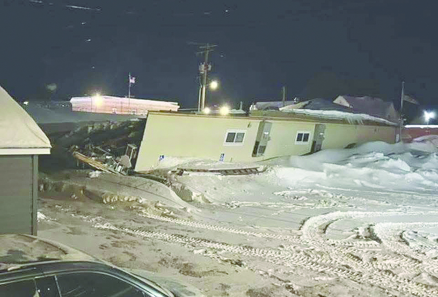 - Downtown Ishpeming was cordoned off Wednesday morning after the collapse of the Veterans of Foreign Wars Post 4573 building on Bank Street, prompting concerns over a gas leak. (Courtesy photo)