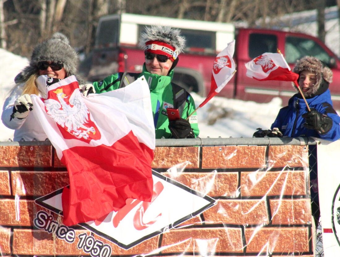 From left, Teresa, Norbert and Krzysztof Jagoda of Poland enjoy the 2018 FIS Continental Cup tournament at Giant Pine Mountain. This year’s tournament is set for Feb. 20-22, featuring a field of 40 or more skiers from eight nations. Admission buttons are available at numerous locations in Dickinson County, or online at www.kiwanisskiclub.com. Pre-sale buttons are $30 each, while buttons at the gate will cost $40. Sanford Health Marshfield Clinic is the title sponsor. (Theresa Proudfit photo)