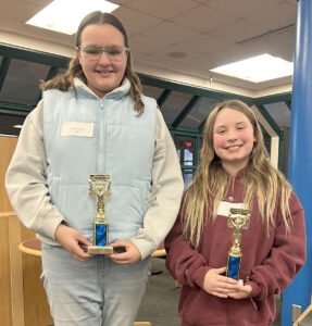 Fifth grade winners from Kingsford in the Iron Mountain-Kingsford Community Schools district spelling bees were, from left, Avril Peterson and Zoe Henry.