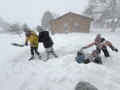 Some made the best of Sunday's major snowfall in the region. From left are Ava, Ethan, Theo, Moriah and Jordy Groeneveld in Quinnesec. (Hannah Groeneveld photo)