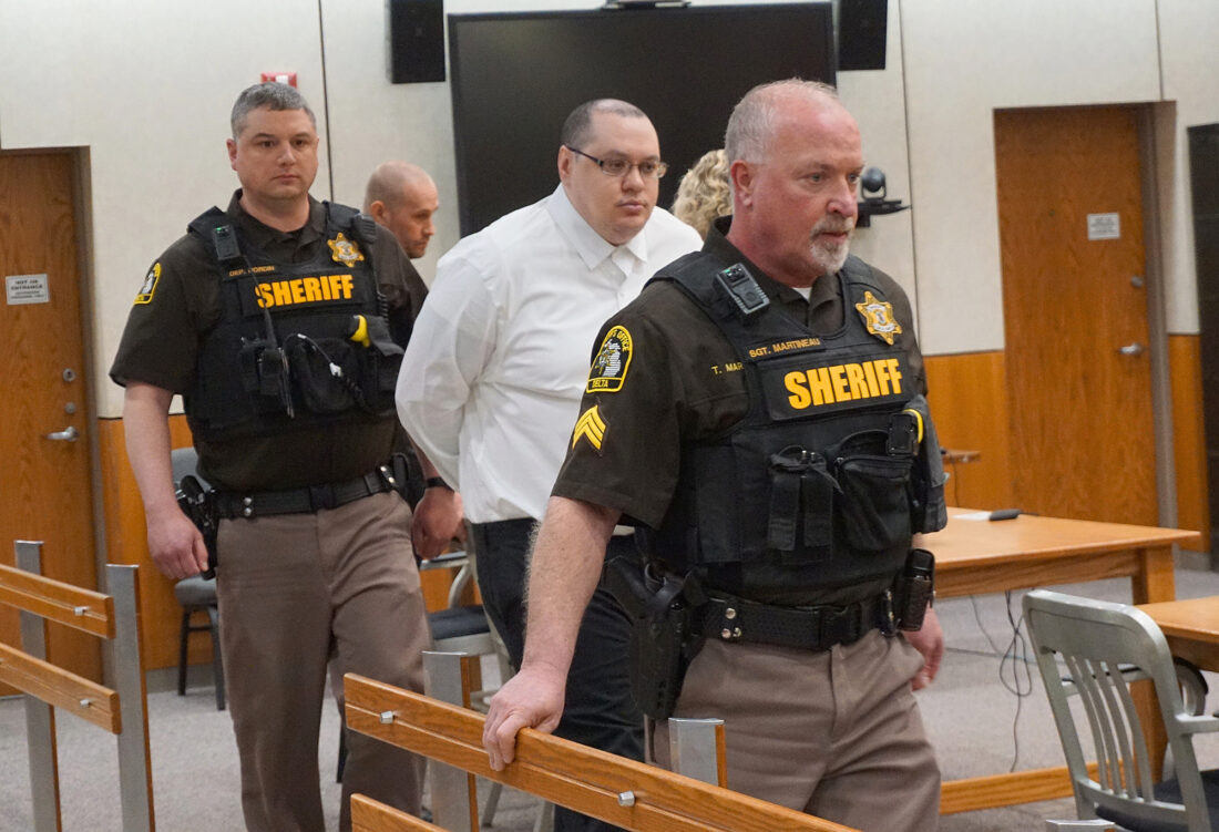 Tavaris Jackson is led out of a Delta County courtroom Thursday after a jury found him guilty of first-degree premeditated murder and other charges in the 2023 shooting death of his pregnant ex-girlfriend. (Sophie Vogelmann/Daily Press)