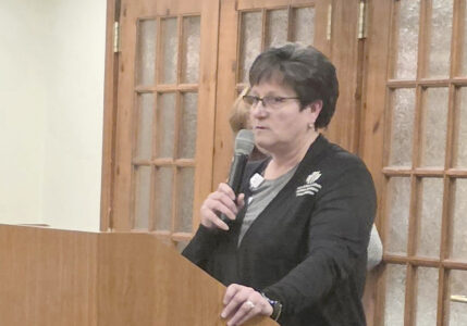- Jill Steckbauer, senior philanthropy officer for the Marshfield Clinic Foundation, gives a presentation at the first Dickinson County 100-Plus Women Who Care meeting of 2026. They were selected to receive the group’s donation for the quarter. (Submitted photo)