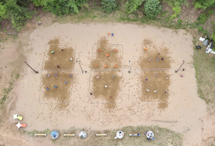 - An aerial view of the volleyball courts at The Sand Lot in Niagara, Wis. The site also hosts a pickleball league. (Courtesy photo)