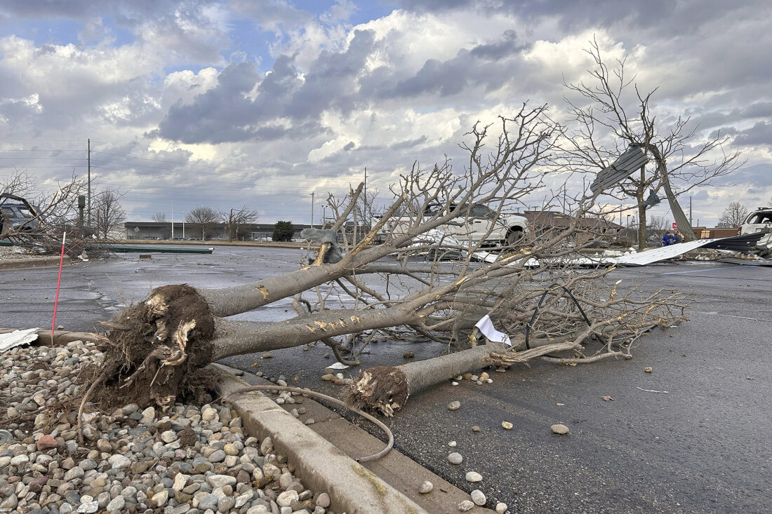 - Damage is seen at Menard’s store after a severe storm Friday in Three Rivers, Mich. (Devin Anderson-Torrez/Jackson Citizen Patriot via AP)