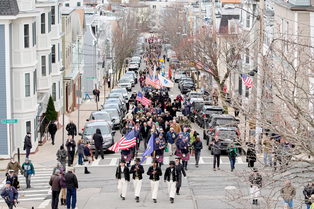 - A procession marches up Telegraph Street on March 17 in Boston in an Evacuation Day ceremony marking the 1776 departure of British troops from the city during the American Revolutionary War. (AP Photo/Robert F. Bukaty)