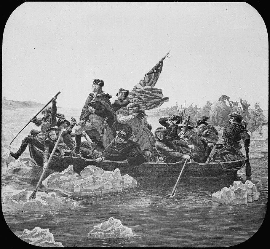 - This reproduction of an 1851 painting by Emaneul Leutze shows Gen. George Washington crossing the frozen Delaware River on Christmas night 1776.