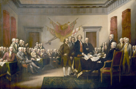 - Shown is an 1819 painting by John Trumbull, “The Declaration of Independence, July 4, 1776.” Trumbull reportedly stayed with Thomas Jefferson while recreating this scene of the nation’s founders signing the document. (National Archives)