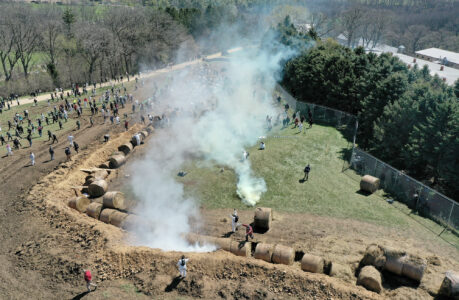 Animal rights activists react to tear gas Saturday while attempting to gain entry into Ridglan Farms beagle breeding and research facility in Blue Mounds, Wis. (Amber Arnold/Wisconsin State Journal via AP)