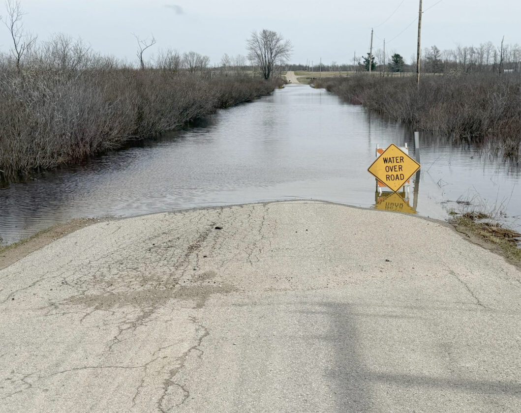 The Menominee County Road Commission on Friday posted this photo of a flooded road. Across the county, three bridge closures and about 10 road closures remained in effect Monday. (Menominee County Road Commission photo)