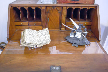 - The desk of Jacob Engelbrecht, who was a prolific diarist recording Frederick County history in the 19th century. (Ric Dugan/Frederick News-Post photo)