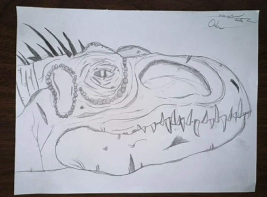 - One of Odin Plourde’s favorite dinosaur drawings. (Contributed photo)