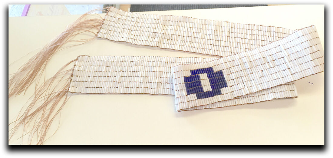 - Wampum belt made for the One Dish and One Spoon Treaty between the Anishinaabe, Mississaugas and Haudenosaunee peoples in 1701. (Image courtesy of John Sproule, via Northern Michigan University’s Beaumier U.P. Heritage Center)