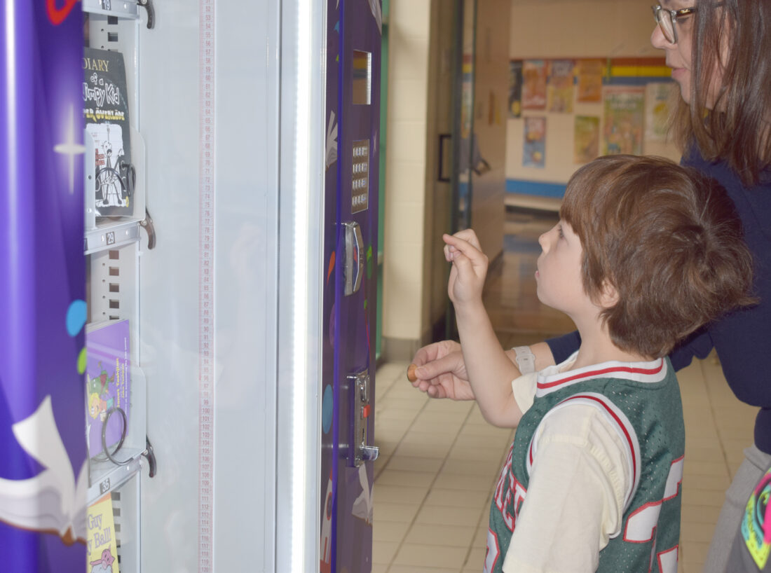 Third grade teacher Sarah Gendron applied for a grant from the district’s Zanardi Family Trust to purchase the machine through the Book Nook. It holds both paperback and hardcover books and comes with 200 vending tokens.
