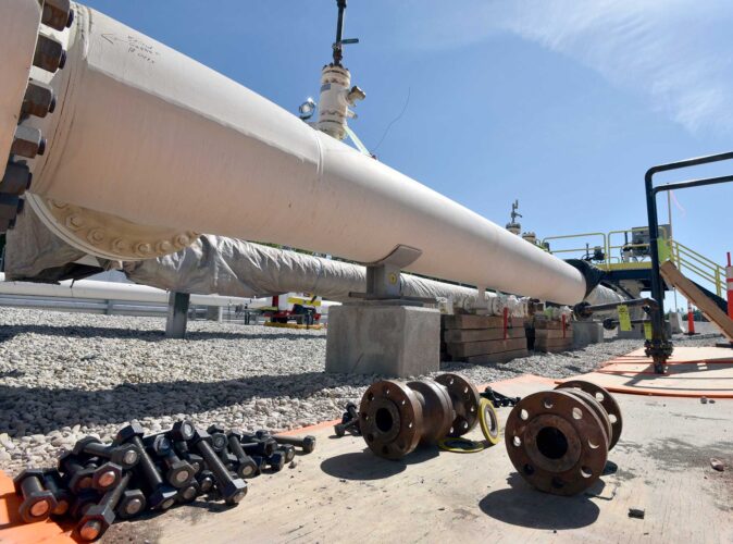 Environmentalists are challenging Michigan regulators’ decision to approve encasing part of an aging Enbridge Energy oil pipeline that runs beneath a channel connecting two Great Lakes, arguing that they failed to properly consider alternatives that would minimize climate impacts.