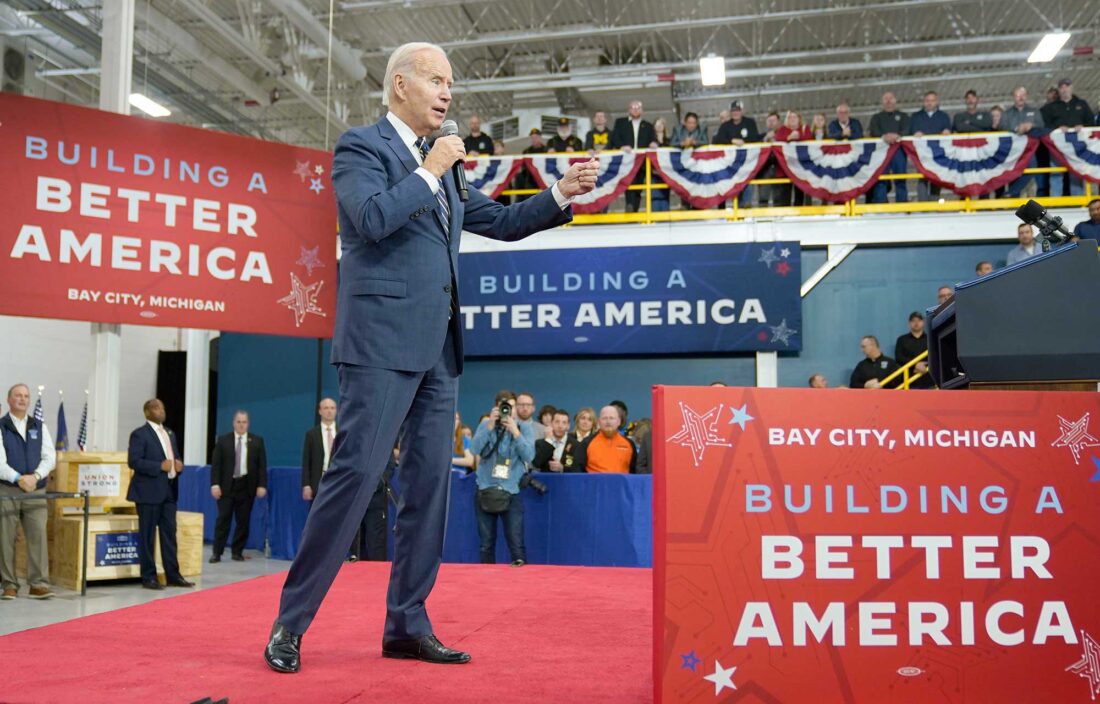 President Joe Biden speaks Nov. 29 about manufacturing jobs and the economy at SK Siltron CSS, a computer chip factory in Bay City, Mich. (AP Photo/Patrick Semansky, file)