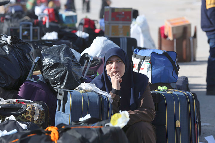 PALESTINIANS STRANDED IN Egypt wait to cross the Rafah crossing to the Gaza Strip at Rafah, Egypt, as a temporary ceasefire went into effect Friday. (AP Photo/Mohammed Asad)