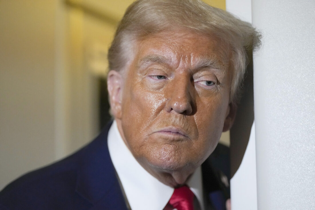President Donald Trump speaks to reporters aboard Air Force One on Sunday while en route to Joint Base Andrews, Md., after attending a memorial for conservative activist Charlie Kirk in Glendale, Ariz. (AP Photo/Julia Demaree Nikhinson)