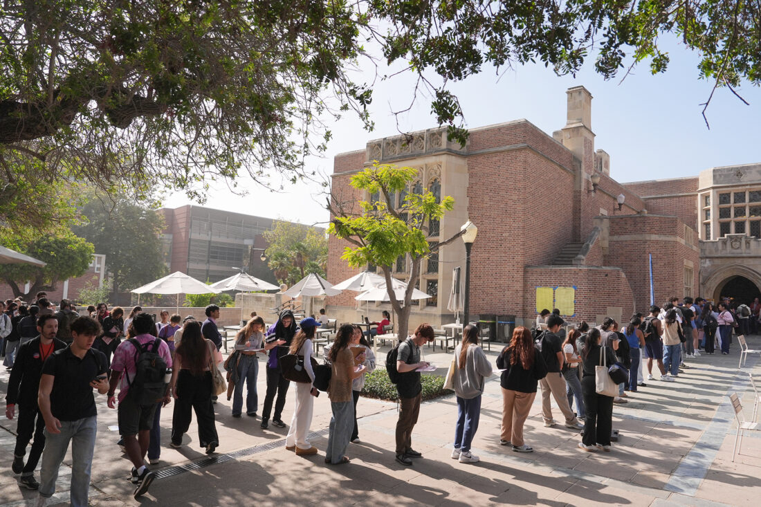 Voters form a line Tuesday at a polling station on the UCLA campus in Los Angeles. (AP Photo/Jae C. Hong)