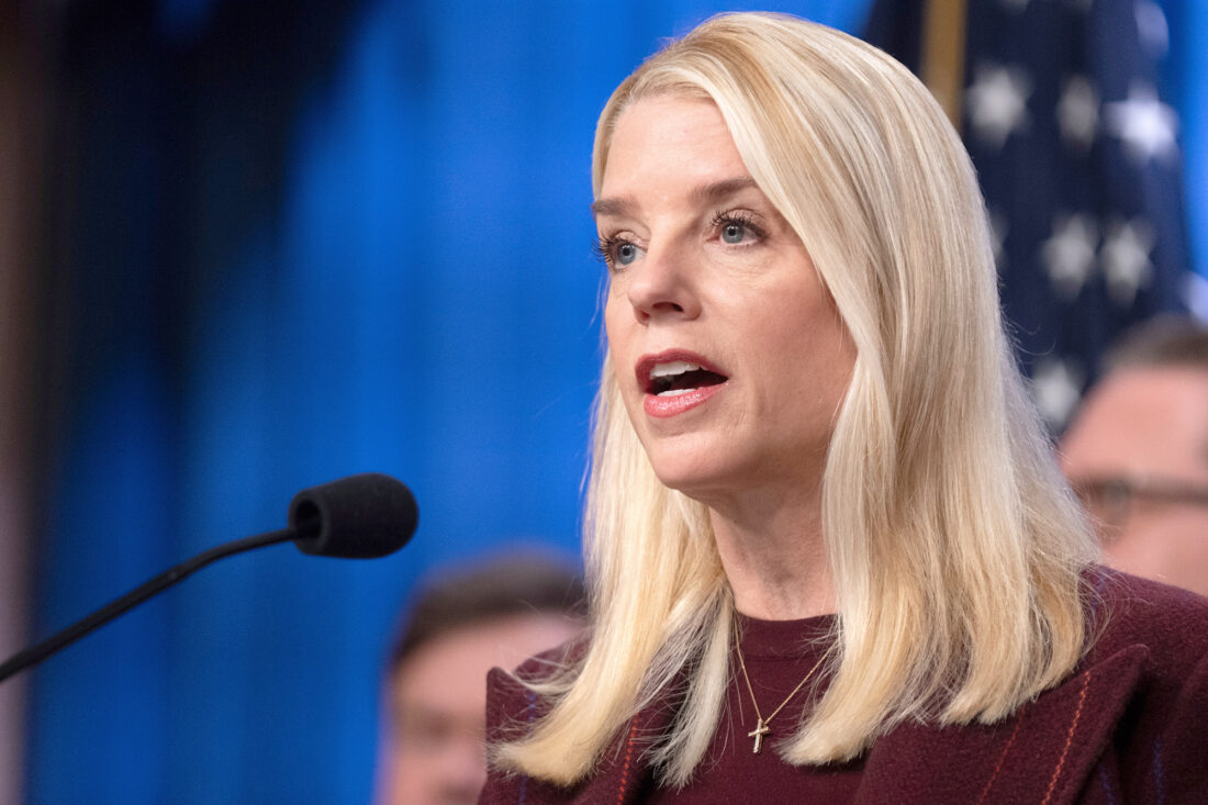 Attorney General Pam Bondi speaks with reporters during a news conference Nov. 19 at the Department of Justice in Washington. (AP Photo/Mark Schiefelbein)