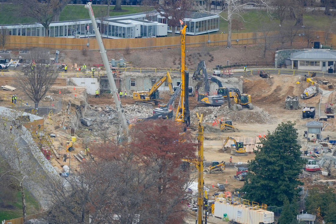 Work continues on construction of the ballroom at the White House in Washington, where the East Wing once stood. (AP Photo/Pablo Martinez Monsivais)