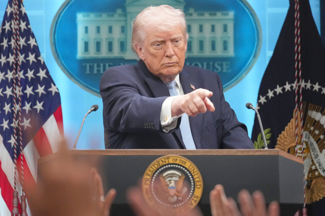 President Donald Trump during a news conference Monday in the James Brady Press Briefing Room at the White House in Washington. (AP Photo/Mark Schiefelbein)