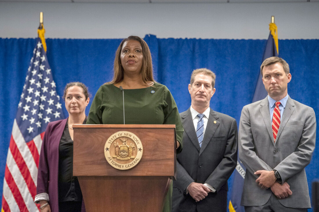New York Attorney General Letitia James speaks during a press conference, Wednesday, Sept. 21, 2022, in New York. New York’s attorney general sued former President Donald Trump and his company on Wednesday, alleging business fraud involving some of their most prized assets, including properties in Manhattan, Chicago and Washington, D.C. (AP Photo/Brittainy Newman)