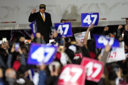 Minutes before Trump’s Michigan rally was scheduled to begin at 7:30 p.m. Eastern, his spokesman posted on the social media platform X that Trump was just leaving Texas, more than two hours away by air. Trump recorded a video from his plane urging his supporters to stay, noting it was Friday night and promising, “We’re going to have a good time tonight.”