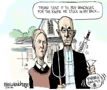 “We love our farmers,” Trump said in announcing the $12 billion aid package at a White House event Monday. He has odd ways of showing it. In addition to the havoc his tariff policies are playing with farm expenses and crop prices, his immigration crackdown has made farm labor more scarce. And his freezing of foreign food aid — in addition to being damaging to America’s global standing and unconscionably cruel to countless children — has deprived U.S. farmers of yet another major market for their crops.