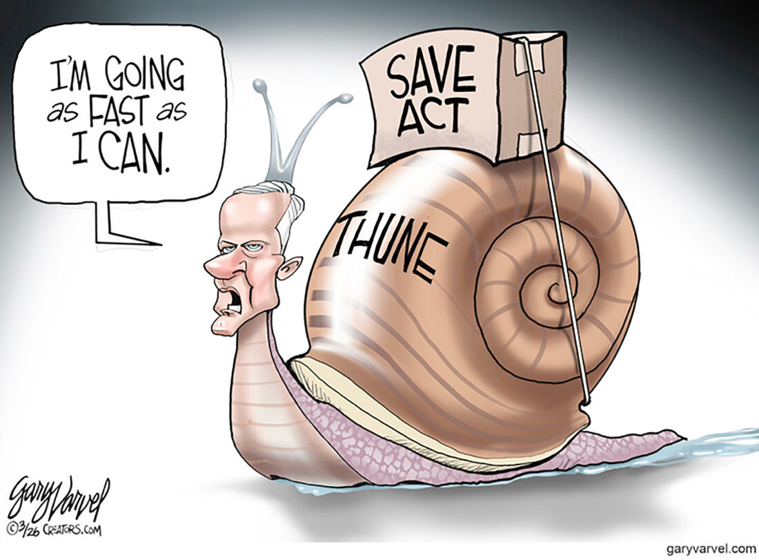 Editorial cartoon for March 16, 2026