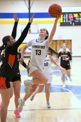 KINGSFORD – Along with another impressive scoring performance from sophomore Aubrie Moore, the Kingsford Flivvers shut down Escanaba’s top scoring threats on their way to a 61-29 victory over the Eskymos in a Great Northern Conference matchup Friday at Flivver Gym.