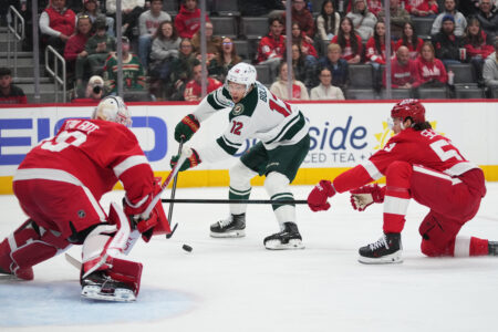 The Wild led 4-1 before allowing Detroit to score three times in the third period and tie it. A penalty on Patrick Kane paved the way for Kaprizov to score his third goal of the game.