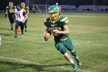 - (Ron Deuter/Daily News Photo) Kaden Schuls LOOKS for yardage against Gillett on Sept. 20, 2019.