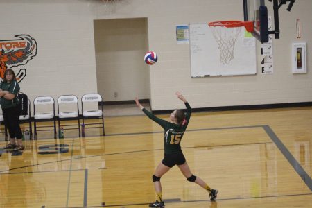 - (Matt McCarthy/Daily News Photo) Florence’s Jenna Springer prepares to serve vs. Goodman-Pembine at Pembine on Oct. 1, 2019.