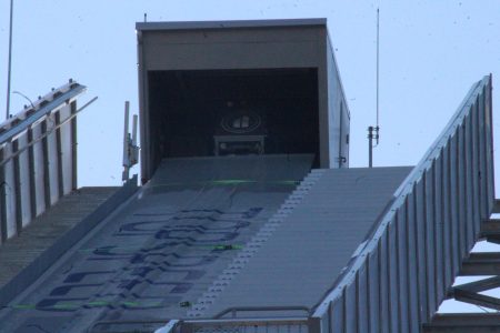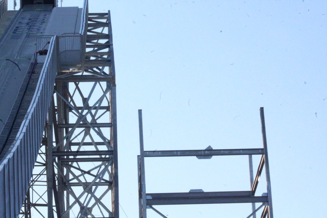 A warming shelter at the top of the new stairs structure will be completed prior to the 2021 Continental Cup weekend. An elevator on the back side of the jump, all the way to the top, will be installed in the future.