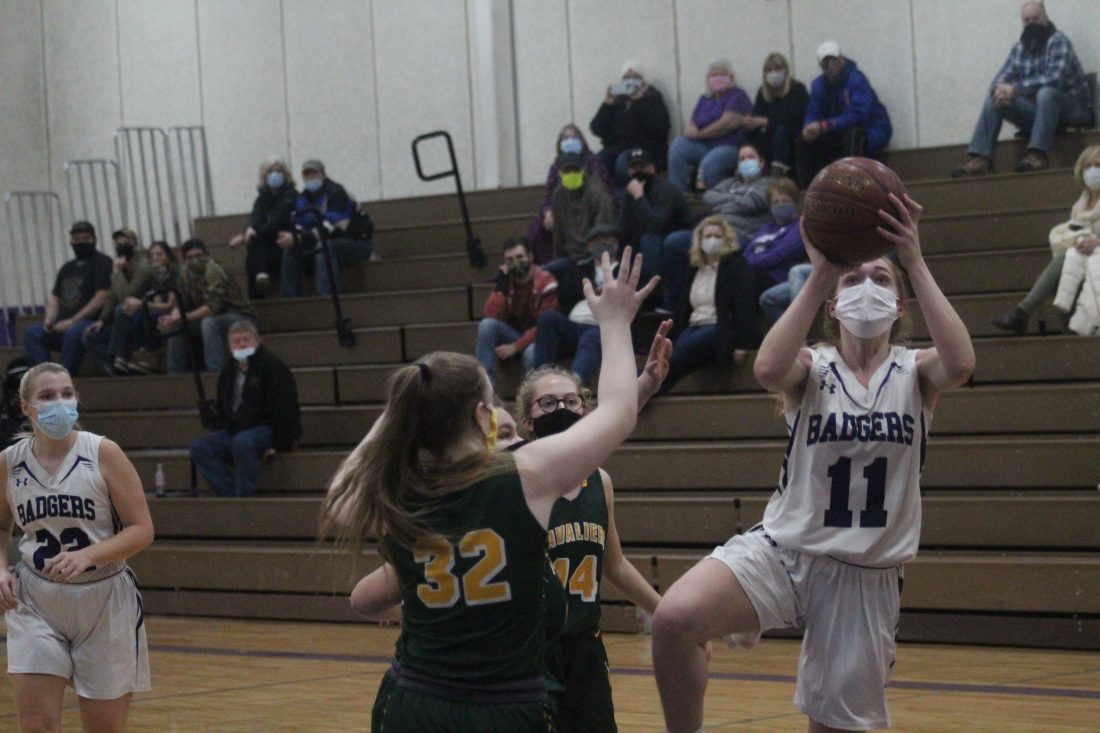 The Lady Badgers had three players in double figures, led by senior Alyssa Cretton with a game-high 16 points. Sophomores Josie Rock — with 15 points from beyond the arc — and Morgan Borchardt, with 12 points, joined Cretton in double figures.